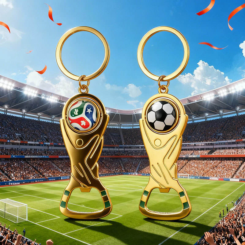 พวงกุญแจเปิดขวดโลหะผสมสังกะสีรูปฟุตบอลโลก 2026 สหรัฐอเมริกา-เม็กซิโก-แคนาดา แบบกำหนดเอง ทันสมัย ทนทาน พกพาสะดวก