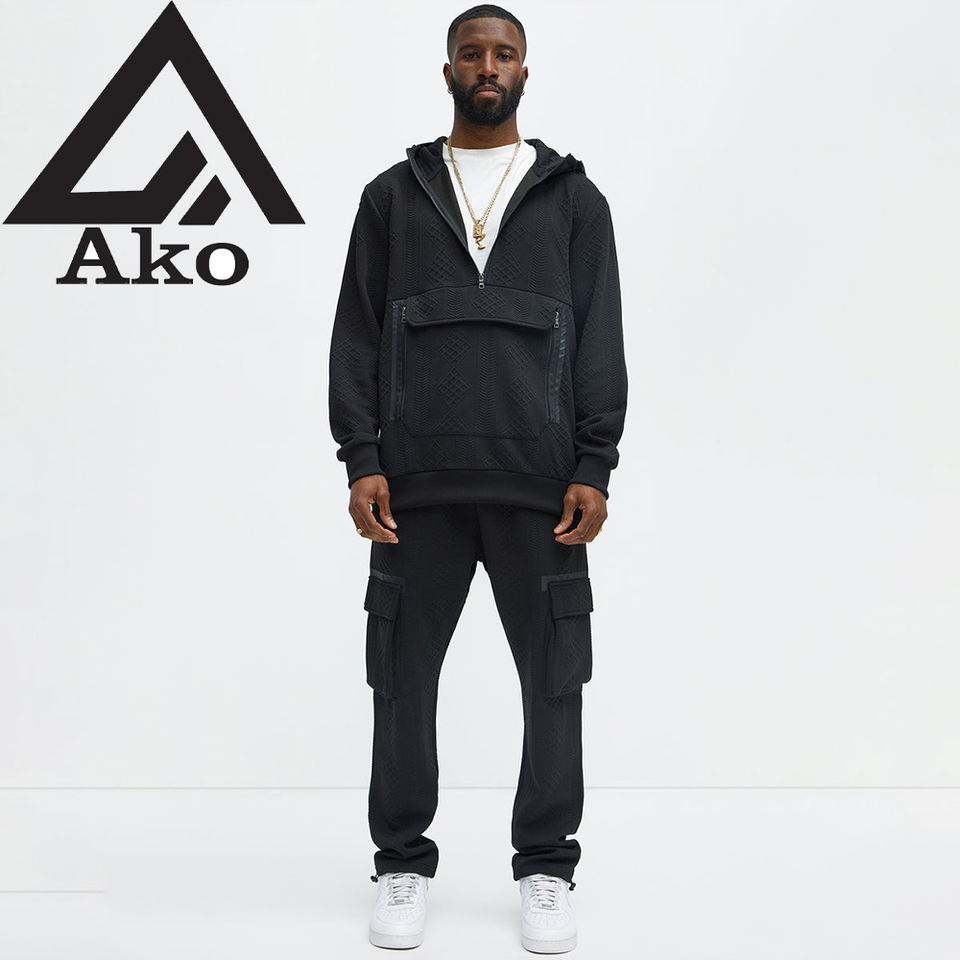 ชุดวอร์มผ้าแคนวาสแบบเรียบ ปี 2026 สำหรับทุกเพศ ผลิตจากโพลีเอสเตอร์ 100% เสื้อฮู้ดดี้ กางเกงจ็อกเกอร์ ตกแต่งคริสตัล ปรับแต่งได้สำหรับผู้ชาย โดย Ako