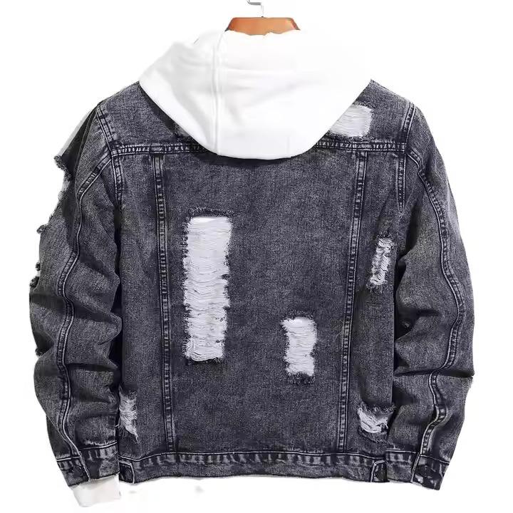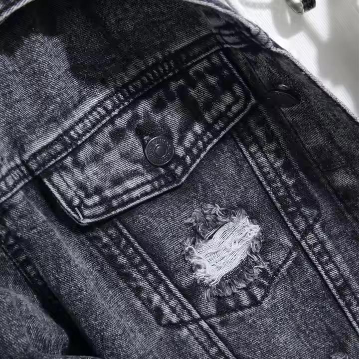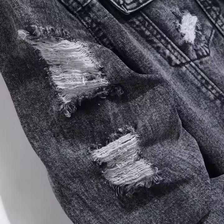 แจ็คเก็ตยีนส์สีน้ำเงินวินเทจปี 2026 สำหรับผู้ชาย สไตล์ลำลองทรงเข้ารูป แขนยาว ขาดๆ แบบไบค์เกอร์ สตรีทแฟชั่น ตัวเสื้อปักตัวอักษรด้านหน้า เป็นมิตรกับสิ่งแวดล้อม คุณภาพดี