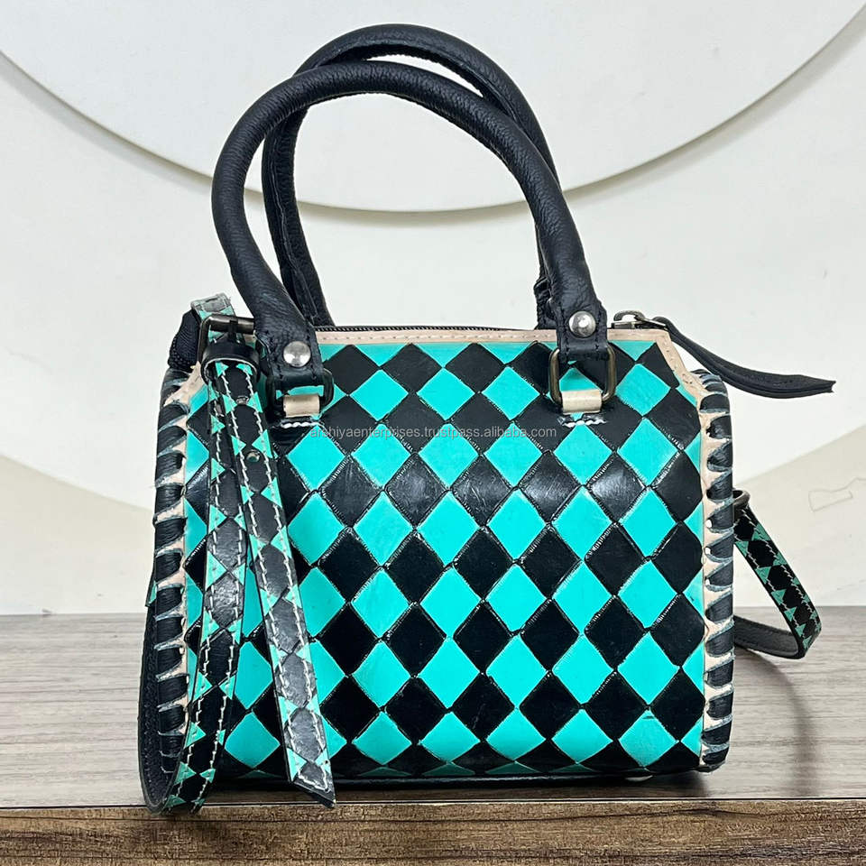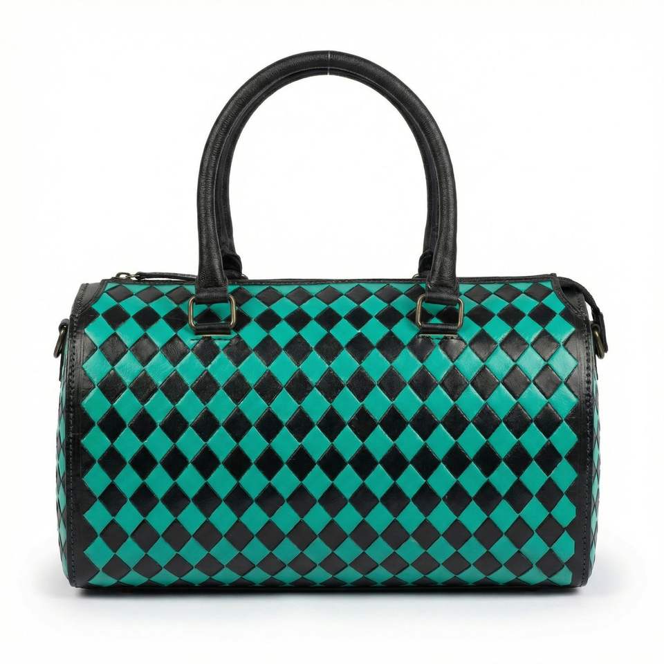 กระเป๋าเดินทางสุดหรูแบบสปีดดี้ดัฟเฟิลลายตารางสีเทอร์ควอยซ์หนังแท้ 100% งานแฮนด์เมดสั่งทำขายส่งปี 2026 พร้อมลายแกะสลักดอกไม้