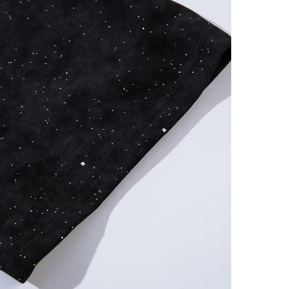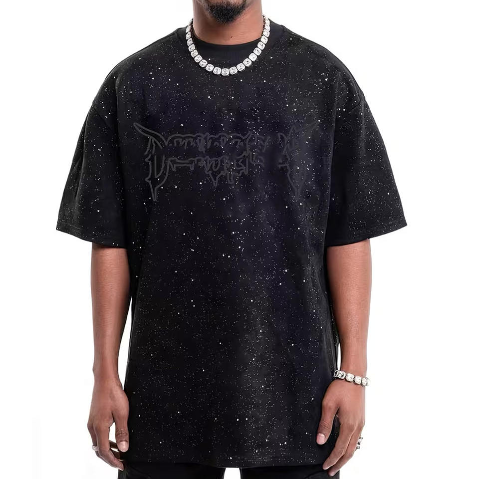 เสื้อยืดโอเวอร์ไซส์ผ้าฝ้ายถัก 100% พิมพ์ลายโลโก้ด้วยเทคนิค DTG ปี 2026 ขายส่งแบบกำหนดเอง ประดับด้วยคริสตัล กันยับ สไตล์วินเทจ ล้างสีแบบ Stone Washed พร้อมดีไซน์ Distressing