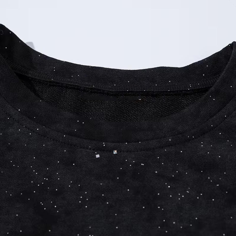 เสื้อยืดโอเวอร์ไซส์ผ้าฝ้ายถัก 100% พิมพ์ลายโลโก้ด้วยเทคนิค DTG ปี 2026 ขายส่งแบบกำหนดเอง ประดับด้วยคริสตัล กันยับ สไตล์วินเทจ ล้างสีแบบ Stone Washed พร้อมดีไซน์ Distressing