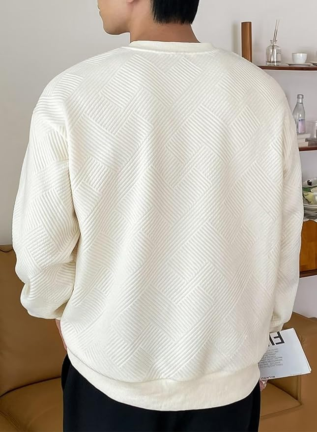 เสื้อสเวตเชิ้ตคอกลมผู้ชายแบบขายส่งปี 2026 สีพื้น แขนยาว ถักโครเชต์ สวมใส่สบาย ลายสก็อต สำหรับฤดูหนาว MOQ ต่ำ