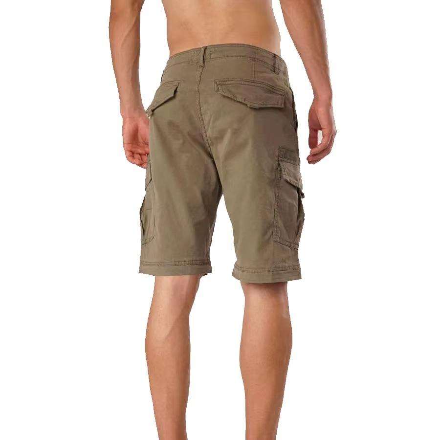 กางเกงขาสั้นผู้ชายแบบคาร์โก้สีพื้นคุณภาพสูงสุด ดีไซน์ใหม่ล่าสุด ปี 2026 ขายส่ง มีกระเป๋าหลายช่อง ความยาวระดับเข่า รับผลิตแบบ OEM