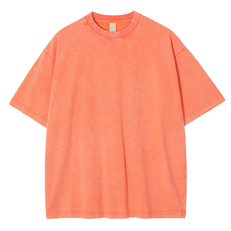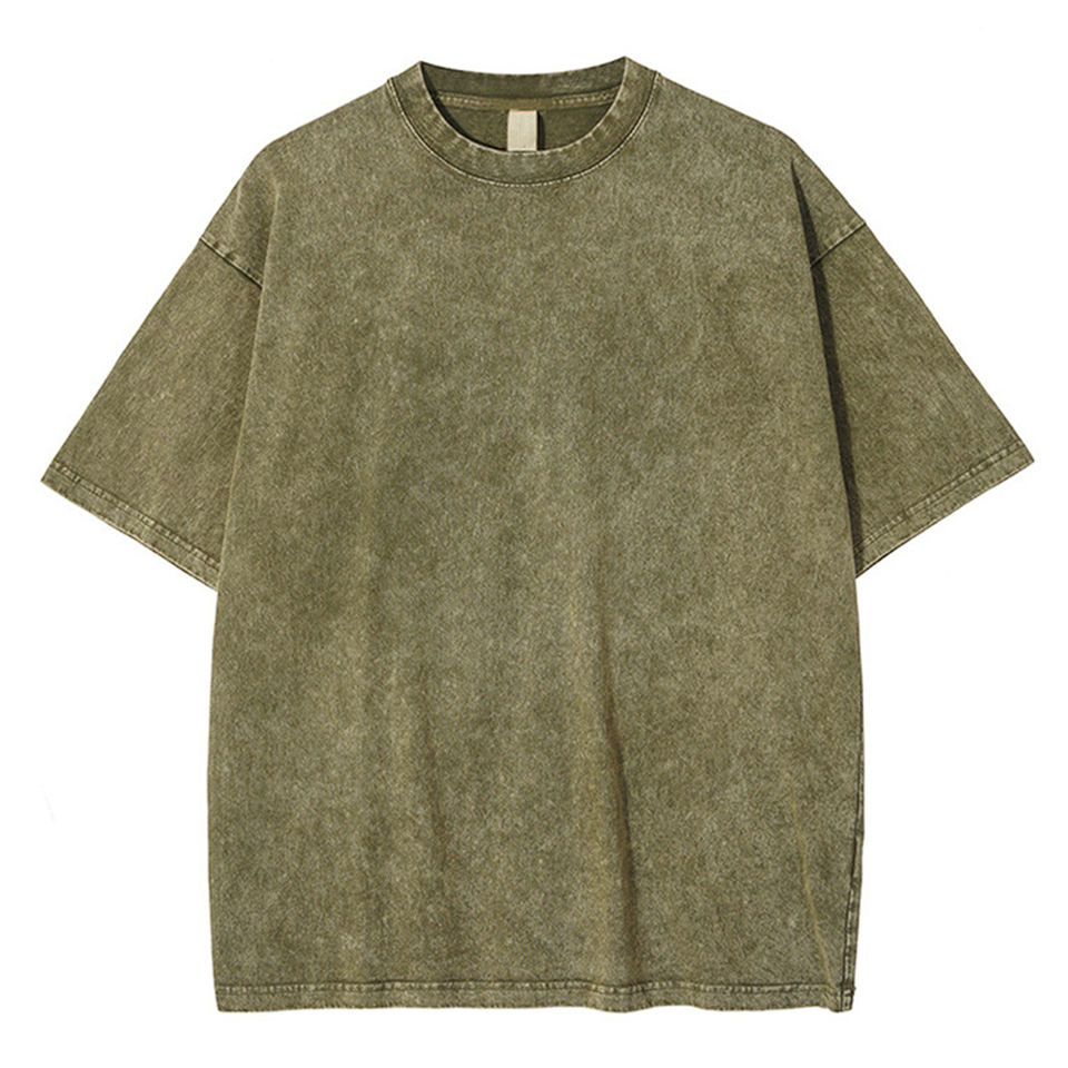 เสื้อยืดผ้าทวิลคอตั้งทรงหลวมแบบดรอปโชว์เดอร์ฟอกสีแบบแอซิดวอช ปี 2026 บริการ OEM/ODM ขายส่ง