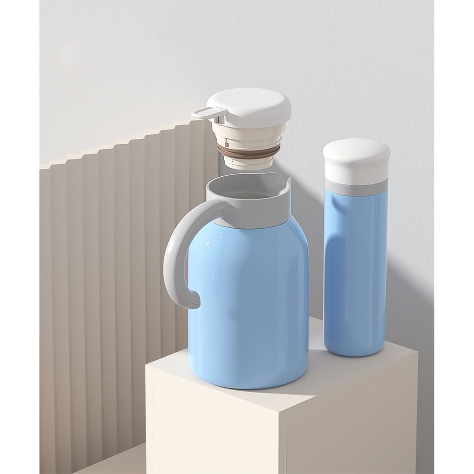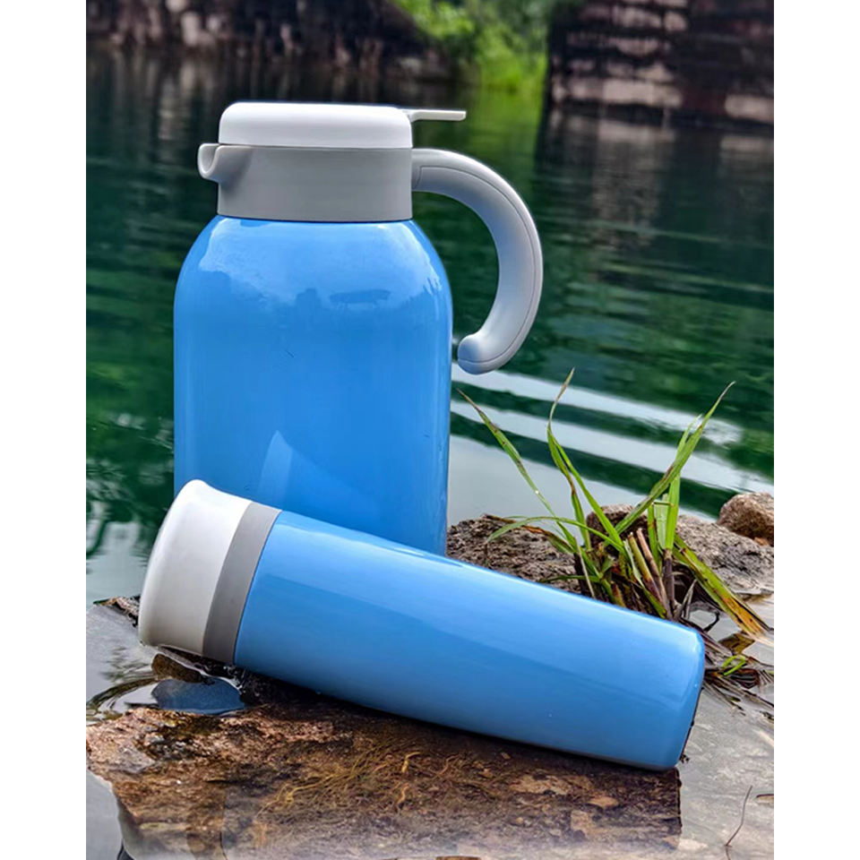 ชุดกระติกน้ำสแตนเลสเก็บความร้อนความเย็น ขนาด 1500 มล. พร้อมฝาปิดแบบกดและแก้วน้ำเข้าชุด สำหรับใช้ในบ้าน ปิกนิกกลางแจ้ง ขายส่งปี 2026