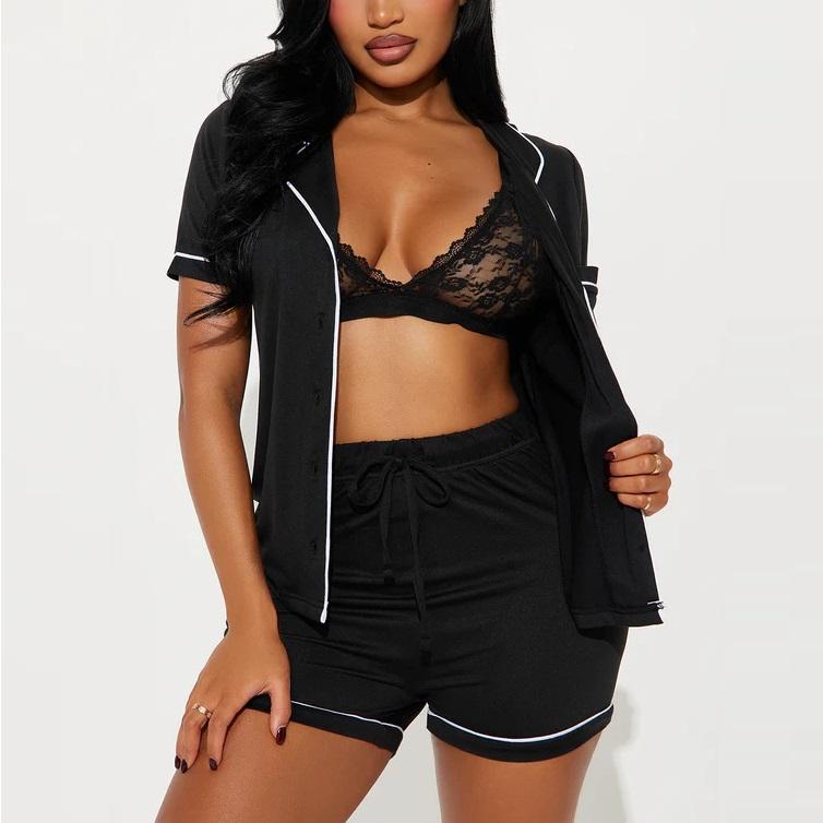 ชุดนอนฤดูร้อนปี 2026 เสื้อแขนสั้น 2 ชิ้น ชุดเซ็ตพิมพ์ลายกระบองเพชร พร้อมรองเท้าบูท กางเกงขาสั้นผ้าเนื้อนุ่ม ชุดนอนลำลองสำหรับผู้หญิง