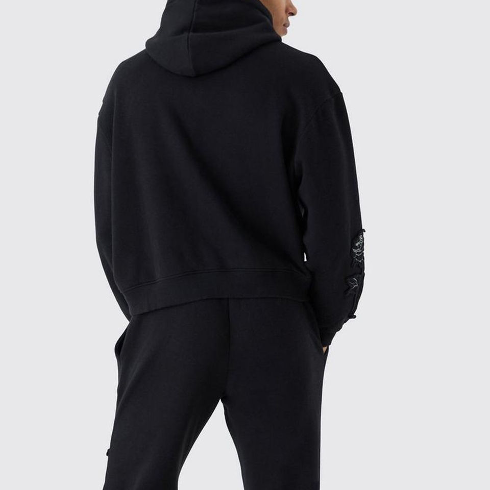 ชุดวอร์มฟลีซกันหนาวแบบ unisex ปี 2026 ขายส่ง ชุดลำลองแบบ 2-in-1 มีฮู้ด กางเกงจ็อกเกอร์ สีดำซีดแบบซันเฟด ปักลายปะติด