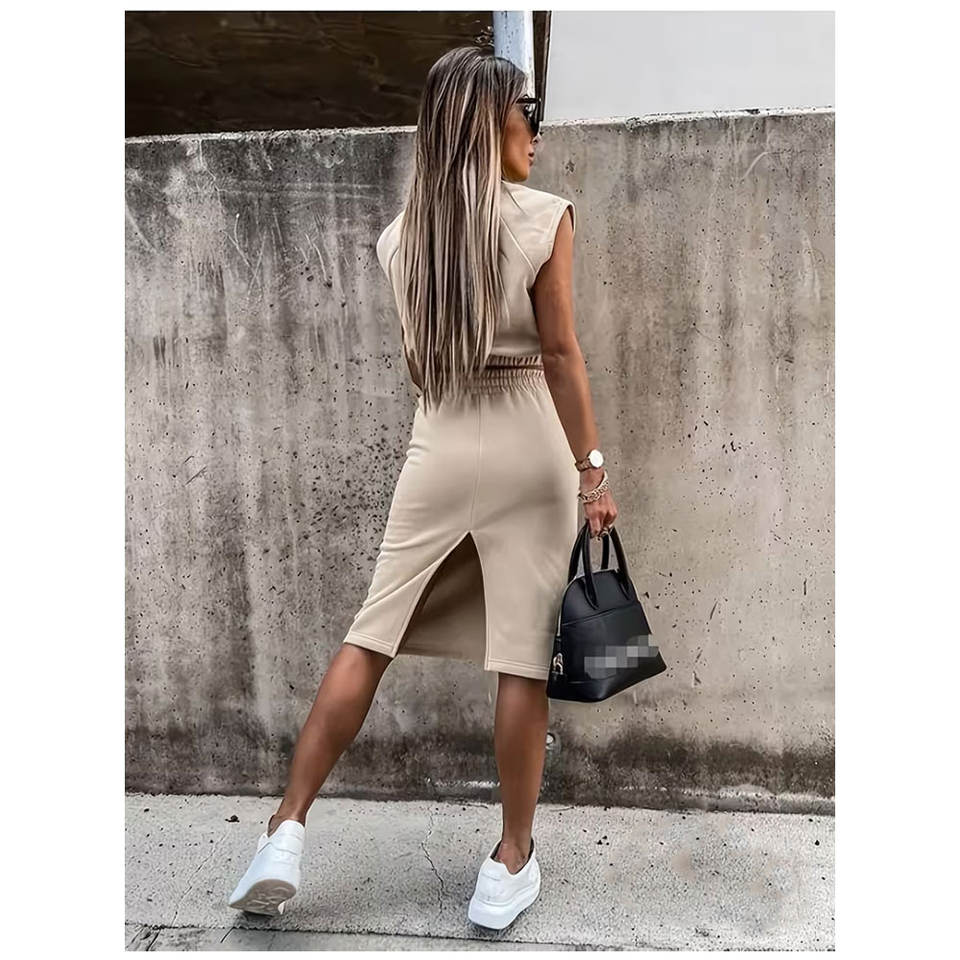 ชุดเซ็ตสองชิ้นสำหรับผู้หญิงขายส่งปี 2026 ชุดลำลองฤดูร้อนแบบเซ็กซี่ สีพื้น ชุดกระโปรงแขนกุดรูดเชือกผูกเอว ชุดสองชิ้นขาสั้น