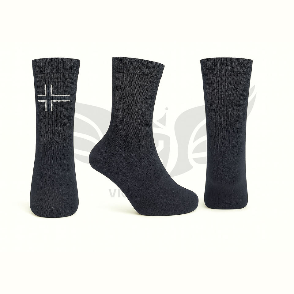 ถุงเท้าผู้ชายสีดำปักลายกากบาทสีขาว ปี 2026 ขายส่ง ถุงเท้าผ้าฝ้ายระบายอากาศ สวมใส่สบาย เหมาะสำหรับใส่ในชีวิตประจำวัน