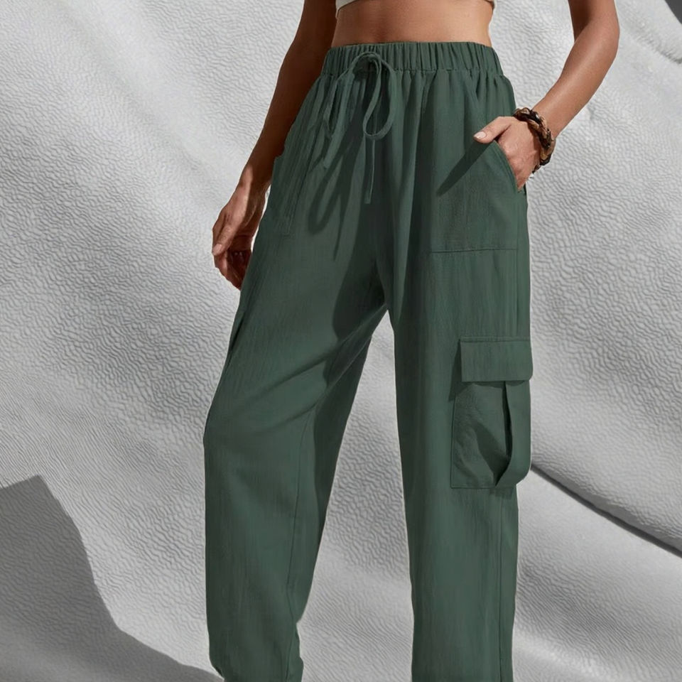 กางเกงคาร์โก้ลำลองสำหรับผู้หญิงฤดูหนาวปี 2026 เอวยางยืดระดับกลาง ระบายอากาศได้ดี ผลิตจากผ้าแคนวาสโพลีเอสเตอร์/คอตตอน เป็นมิตรกับสิ่งแวดล้อม