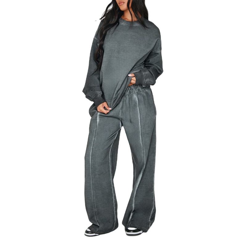 2026 Men Custom Logo Winter Casual Street Wear Acid Wash Set Wholesale Baggy Sweatshirt Jogger Workout Sweatsuit Oversized