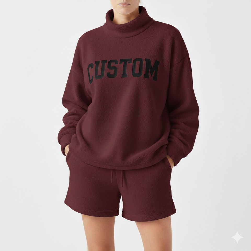 ชุดเซ็ตเสื้อคอเต่าและกางเกงขาสั้นสำหรับผู้หญิง