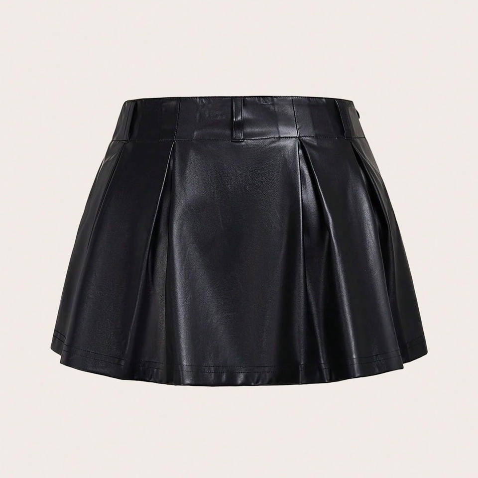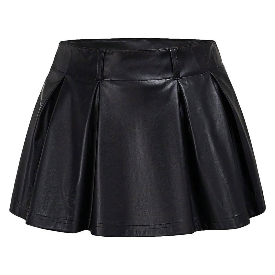 กระโปรงมินิทรงเอหนัง PU สีดำสำหรับผู้หญิง ปี 2026 ชายกระโปรงบานแบบจีบ พร้อมกางเกงขาสั้นในตัว รับผลิตแบบ OEM ODM