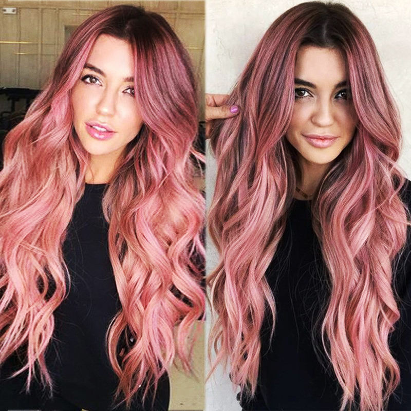 ผมปลอมผู้หญิงแบบยาวปานกลาง ยืดหยุ่นได้ ทนความร้อนสูง ผลิตจากไหมนุ่ม เป็นมิตรต่อสิ่งแวดล้อม ย้อมสีแบบ Big Wave แบ่งเป็นสองส่วน สีดำส้ม ปี 2026