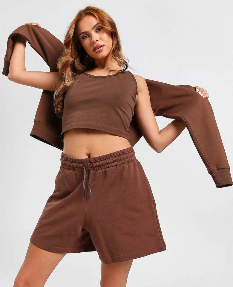 กางเกงขาสั้นออกกำลังกายเอวสูงสำหรับผู้หญิง ปี 2026 ผ้ายืดลายมัดย้อมพร้อมงานปัก ระบายอากาศดี มีเข็มขัดกีฬา ขายส่งแบบ OEM