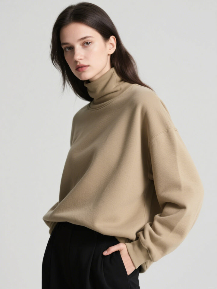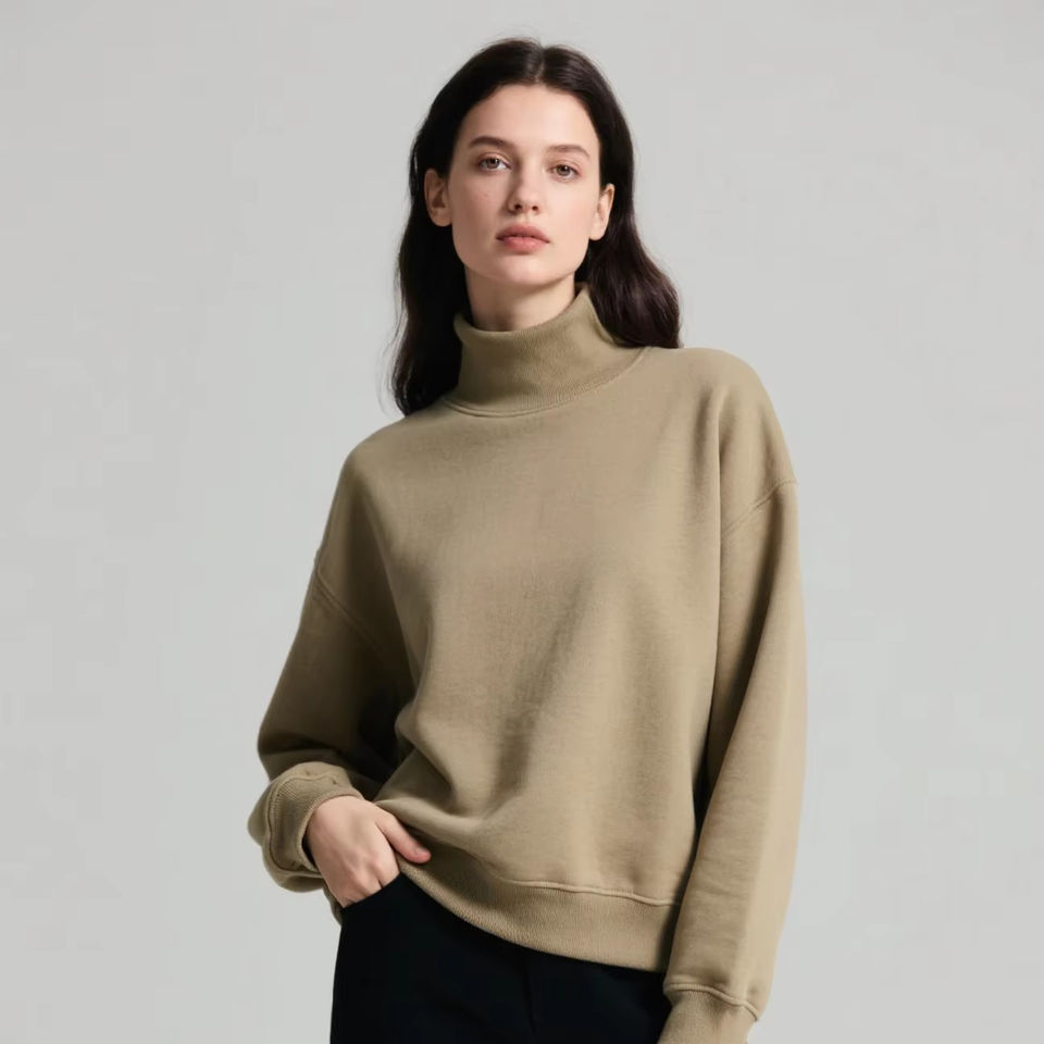 เสื้อสเวตเชิ้ตคอเต่าผ้าฟลีซคุณภาพสูง 100% ผ้าฝ้าย สำหรับผู้หญิง ปี 2026 รับทำโลโก้ตามสั่ง บริการ OEM