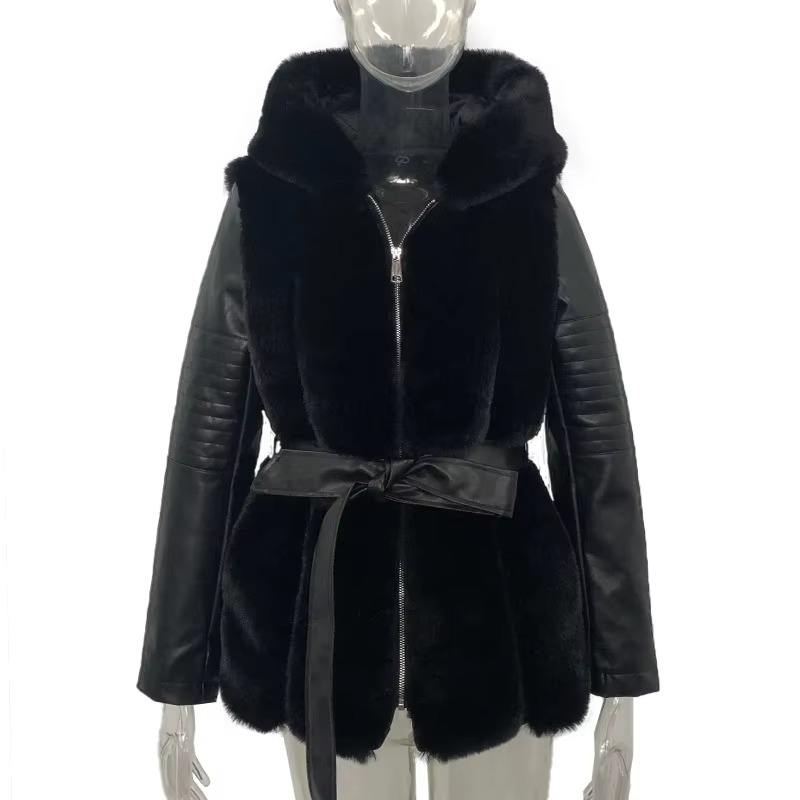 เสื้อโค้ทขน5XL สีดำสำหรับผู้หญิง, เสื้อโค้ทขนเป็ดหนังเทียมมีซิปปิดและเข็มขัดผ้าทอเสื้อผ้ายาวสำหรับฤดูหนาวไซส์ใหญ่พิเศษ2026