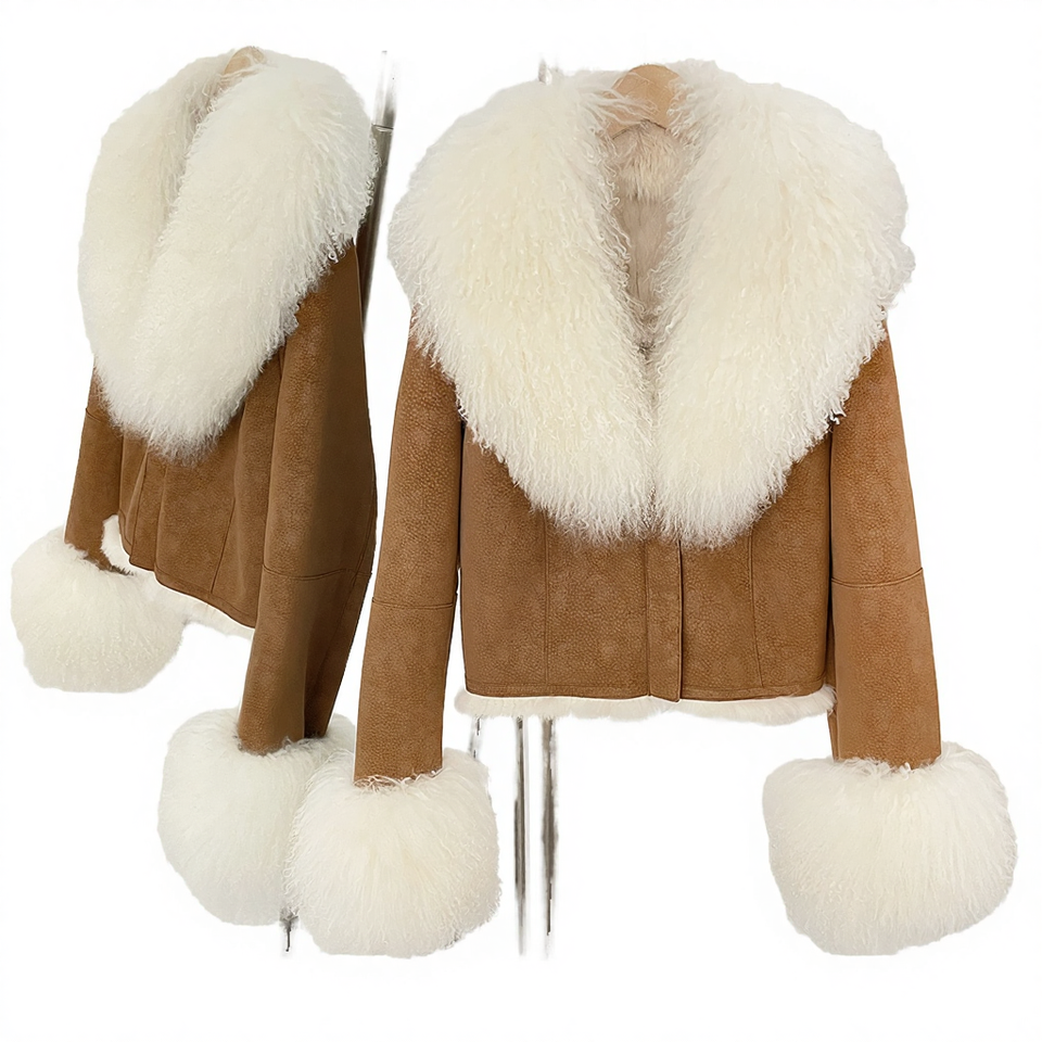 เสื้อแจ็คเก็ตฤดูหนาวสำหรับผู้หญิงปี 2026 หนังกลับปกขนสุนัขจิ้งจอก หนา อบอุ่น ระบายอากาศได้ดี กันน้ำ สไตล์ลำลอง ทอแบบหนา