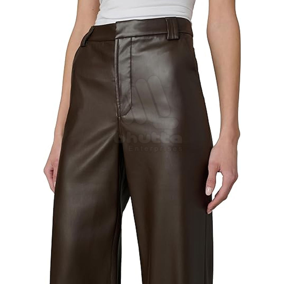 2026 Women's Winter Leather Pants High Quality Breathable Eco-Friendly High Waist Straight Leg Customizable Low MOQ