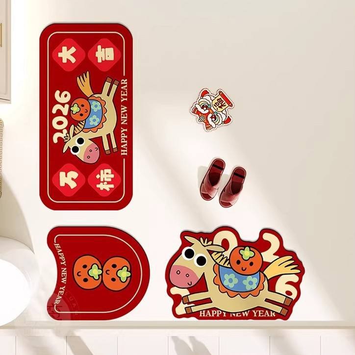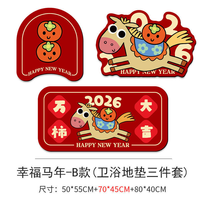 ชุดพรมเช็ดเท้าปีม้า 2026 ลายการ์ตูนสัตว์ 3 ชิ้น กันลื่น ดูดซับน้ำ แห้งเร็ว ตกแต่งห้องน้ำ