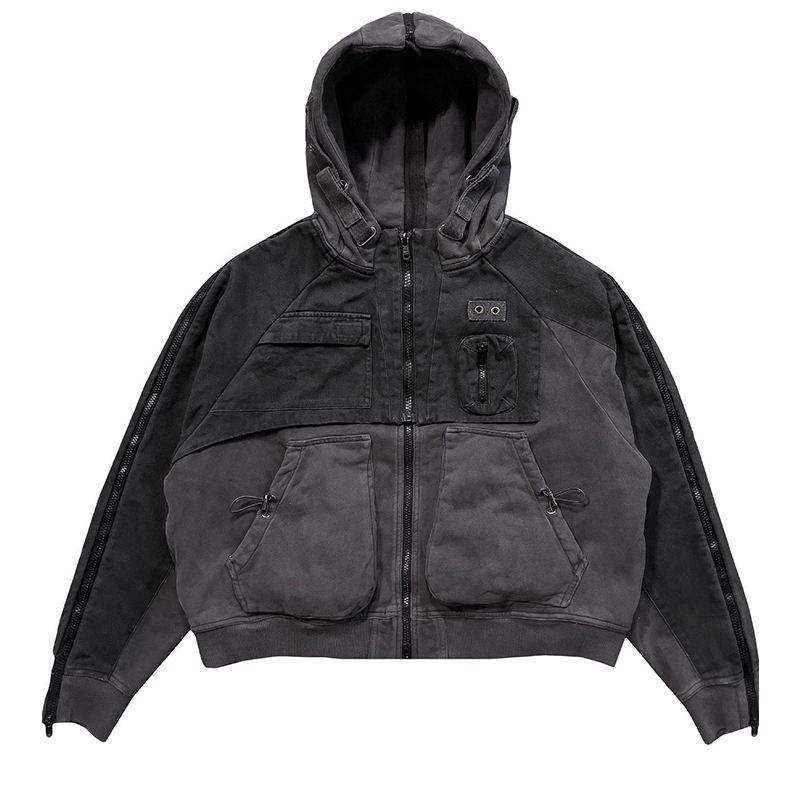 เสื้อฮู้ดดี้ผู้ชายแบบซิป รุ่นปี 2026 ผ้าหนา ทรงสตรีท ลายซิป ตกแต่งด้วยการฟอกสีแบบ Acid Wash พร้อมโลโก้สั่งทำพิเศษ แบบหลายชั้น
