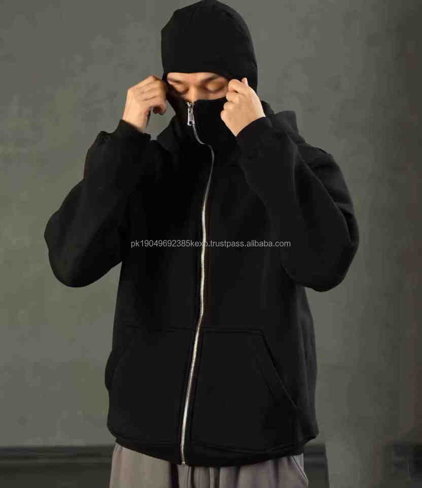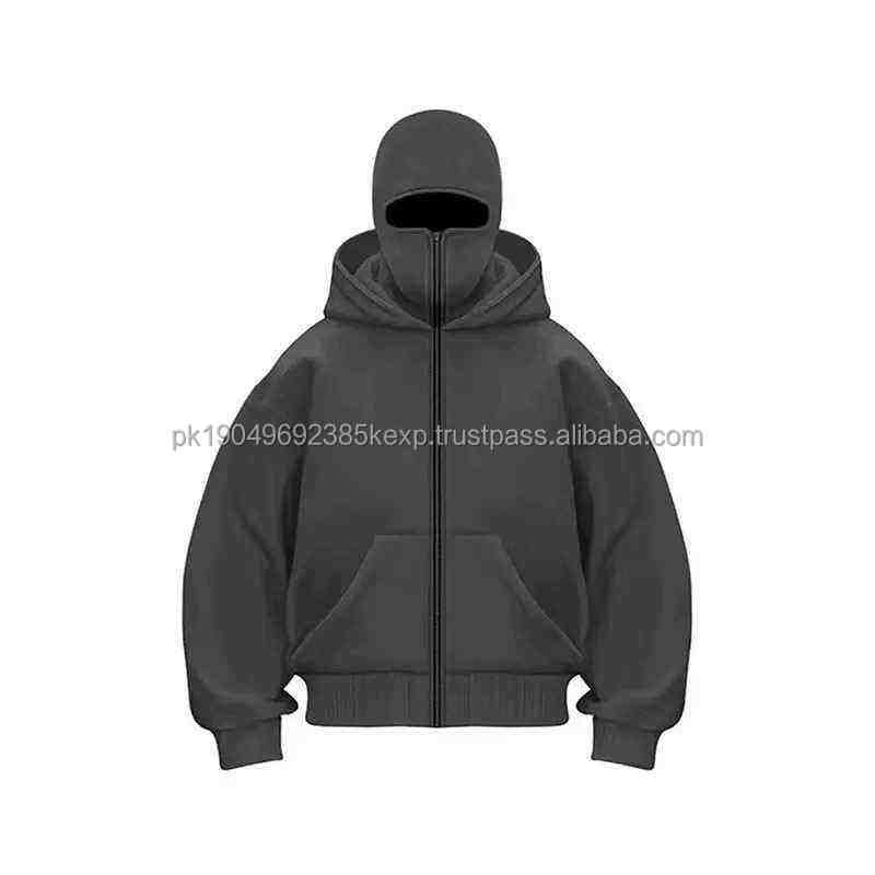 เสื้อฮู้ดซิปแบบบาลาคลาวาสำหรับผู้ชาย รุ่นพรีเมียม สตรีทแวร์ สไตล์นินจา ผ้าคอตตอนเรียบ หนัก 450gsm รุ่นปี 2026