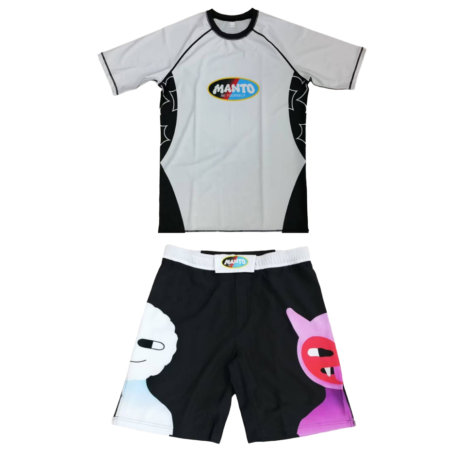 ชุดเสื้อรัดกล้ามเนื้อและกางเกงขาสั้นสำหรับผู้ชายแบบสั่งทำพิเศษ ปี 2026 สำหรับกีฬา MMA และยิวยิตสู-สแปนเด็กซ์/โพลีเอสเตอร์ ป้องกันการหดตัว ชุดสำหรับศิลปะการต่อสู้