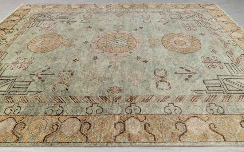 พรมขนสัตว์ทอมือ พรมตะวันออก พรมสีเขียว พรมขนสัตว์แบบดั้งเดิม