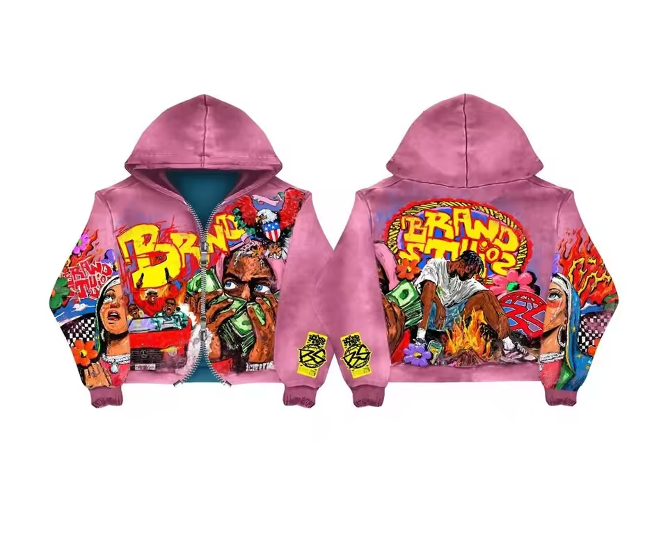 2026 Trilace Custom Logo Embroidered Waterproof Oversized Acid Washed Zip-up Hoodie for Men 100% Cotton DTG Vintage Rhinestone