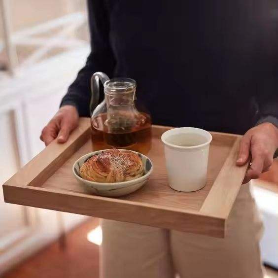 ถาดไม้เสิร์ฟและจัดเก็บของว่างสำหรับชา กาแฟ ขนม อาหารเช้า รุ่น 2026Trending จานเสิร์ฟทรงกลมสำหรับใช้ในบ้านและร้านกาแฟ