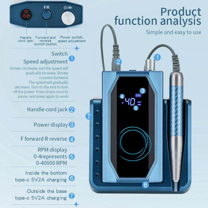 Prodcution name:Rechargeable 60W 40000rpm professional portable manicure nail drill