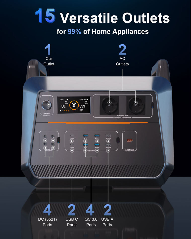 แบตเตอรี่ Lifepo4 2048Wh 2400W พร้อมระบบควบคุมผ่านแอพพลิเคชั่นพลังงานแสงอาทิตย์ ชุดสำรองไฟฉุกเฉินแบบพกพา