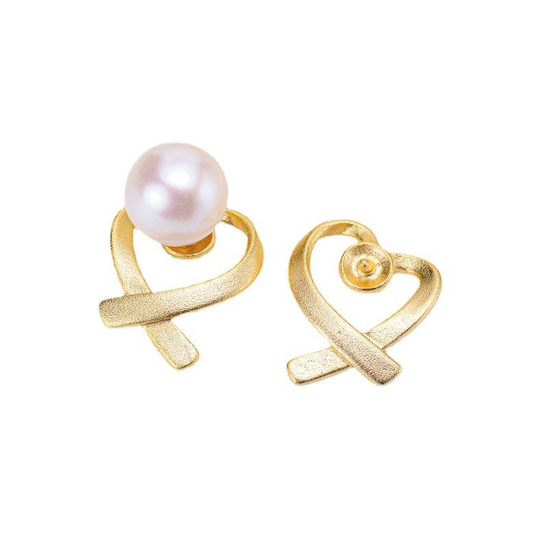 WENCHI 10680 S925 Silver Stud Earrings DIY Pearl Accessories with 5-7mm Round Beads Empty Earnail Support Love Jewelry China