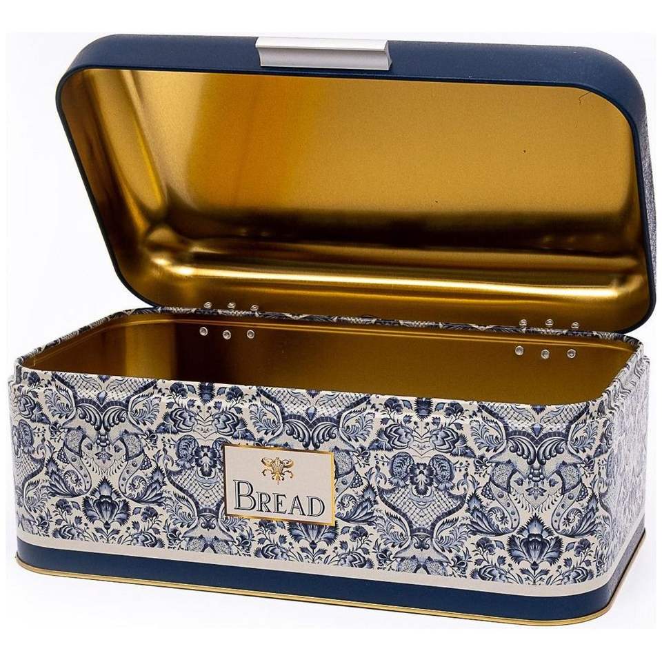 กล่องขนมปังสี่เหลี่ยม209x365x120มม. 9L ฝาบานพับภาชนะเก็บอาหารรูปแบบการตกแต่งสีฟ้าสีขาว