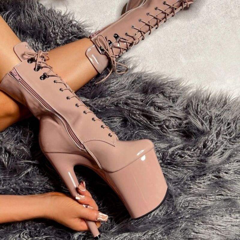 รองเท้าบูทผู้หญิงไซส์ใหญ่ 20 ซม. สไตล์เซ็กซี่ สำหรับเต้นรำแบบเอ็กโซติก แบบมีเชือกผูก พื้นหนา เหมาะสำหรับนักเต้นและนักแสดงโชว์