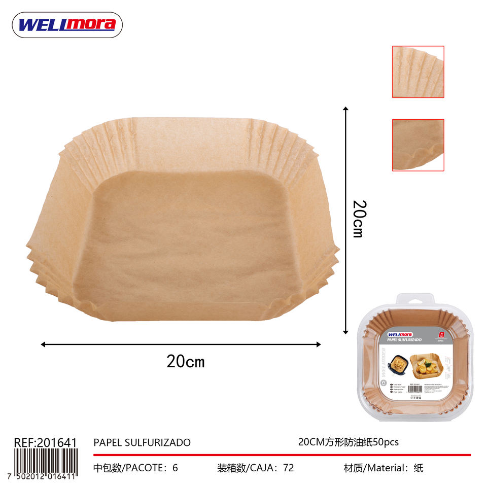 กระดาษกันน้ำมันสี่เหลี่ยม20ซม. เครื่องมืออบและขนม50ชิ้น