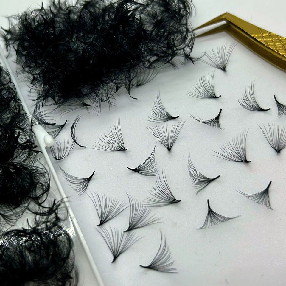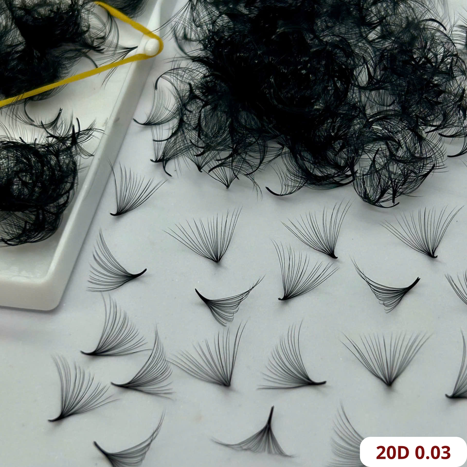 ขนตาปลอมแบบพัดสำเร็จรูป 20D 0.03 เมกะวอลลุ่ม ทำจากเส้นใยสังเคราะห์ สีดำด้าน ฐานเรียวบาง สำหรับต่อขนตา ขายส่ง รับผลิตแบรนด์ส่วนตัว