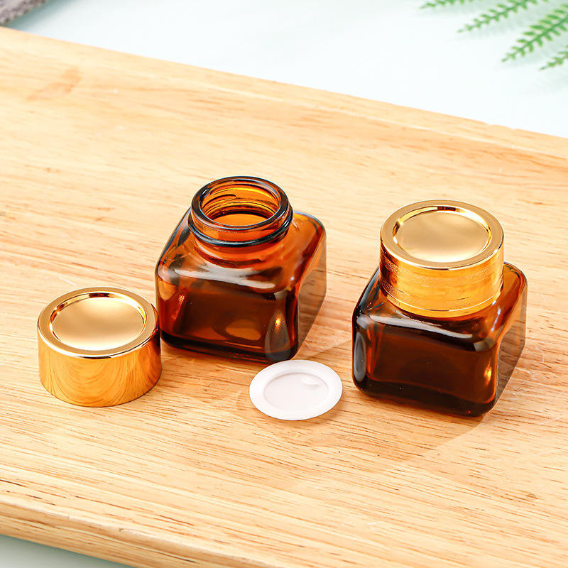 กระปุกครีมแก้วสีเหลืองอำพันเปล่า20กรัมภาชนะใส่ครีมหน้าเครื่องสำอางสุดหรูพร้อมฝา Goldeen