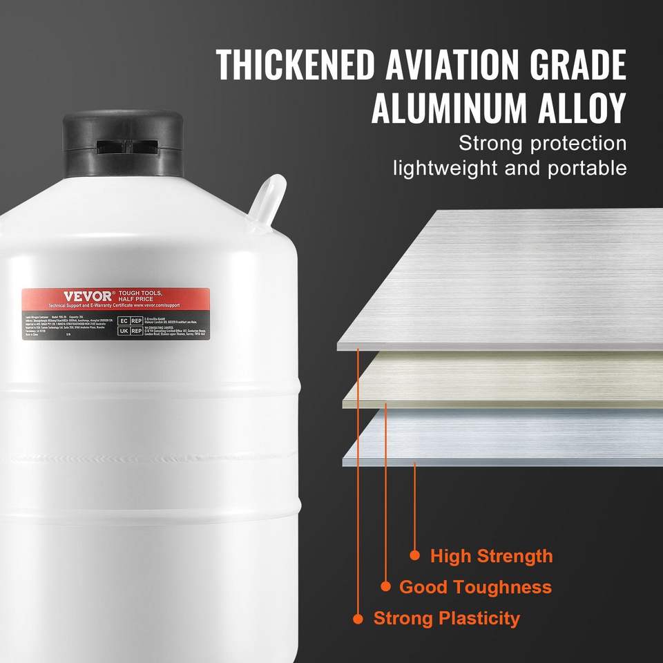 ถัง LN2ไนโตรเจนเหลวทำจากอลูมิเนียมอัลลอยด์20L มี6ถังสำหรับอุปกรณ์ในห้องปฏิบัติการ