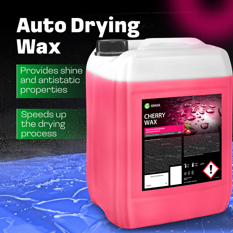 สเปรย์แว็กซ์เคลือบสีรถยนต์ 20 ลิตร กลิ่นเชอร์รี่ สูตรเข้มข้น พร้อมการปกป้องสีรถให้เงางามยาวนาน และแห้งเร็ว