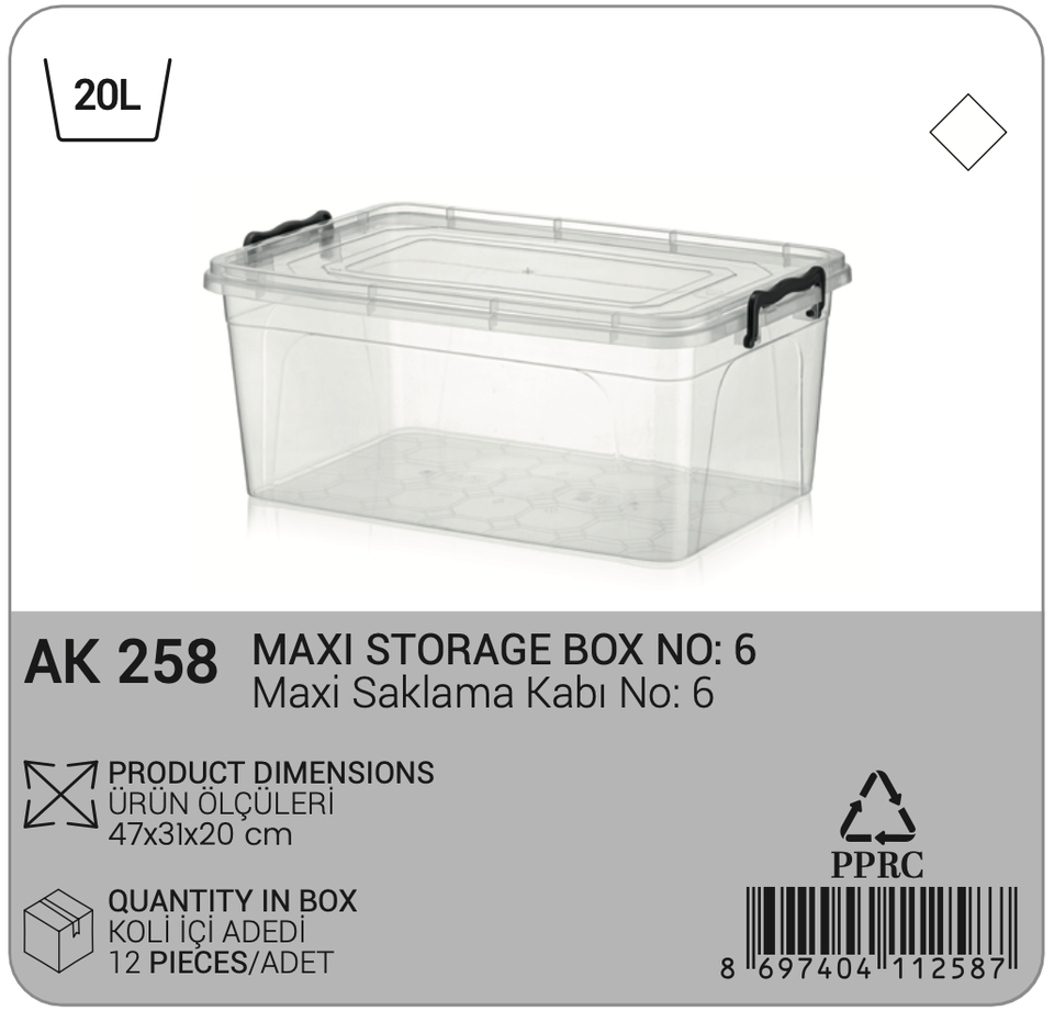 กล่องเก็บของ20L Maxi 6พร้อมฝาปิดและที่จับภาชนะเก็บของความจุขนาดใหญ่พลาสติกใสสำหรับบ้านสำนักงานห้องครัว
