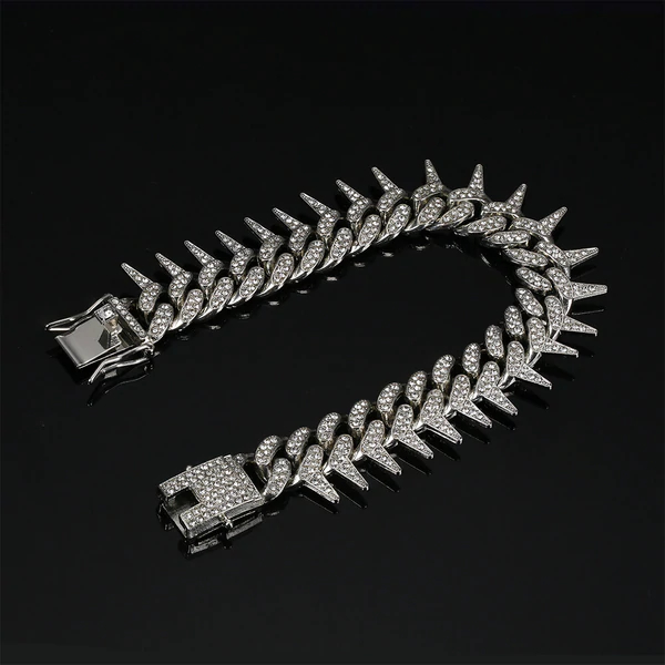 สร้อยข้อมือหนามทอง20มม. สไตล์ฮิปฮอป,สร้อยข้อมือแร็พเครื่องประดับเพชรเหมาะเป็นของขวัญสำหรับแฟนหนุ่มและเพื่อนของคุณ