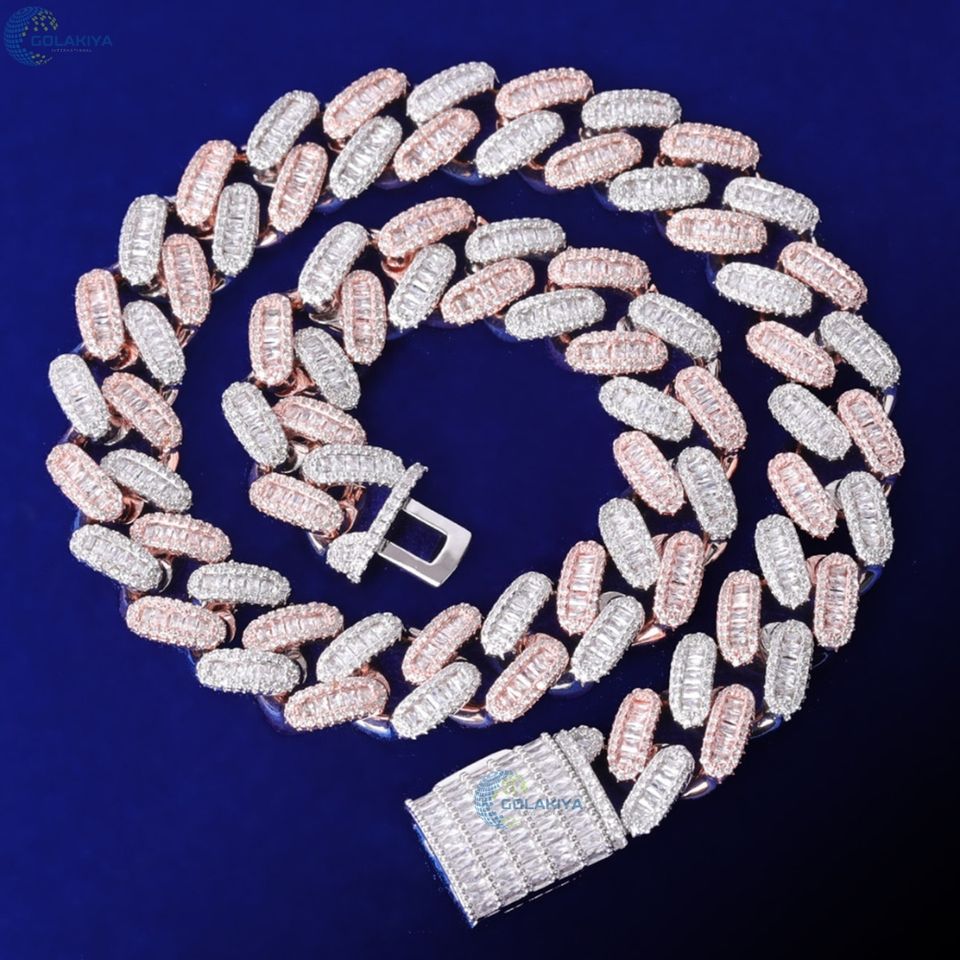 โซ่ลิ้งค์น้ำแข็งออกคิวบา20มม. โซ่โมอิสซาไนท์สีคู่ฮิปฮอปสร้อยคอฮิปฮอปแบบกำหนดเอง