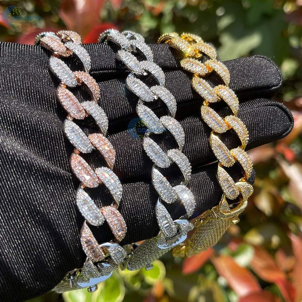สร้อยข้อมือคิวบันลิงค์เพชรแล็บโกรว์ 20 มม. แบบฝังเพชรเต็มเส้น ทรงบาแกตต์ สไตล์ฮิปฮอป สร้อยข้อมือสไตล์แร็ปเปอร์สำหรับผู้ชาย