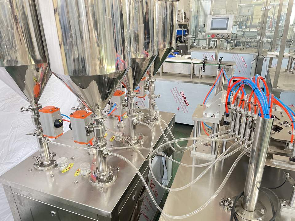 เครื่องบรรจุของเหลวแบบนิวเมติก ขนาด 20 มล. สำหรับบรรจุยาขี้ผึ้ง แบบลูกสูบ ออนไลน์ อุปกรณ์สำหรับสีทาเล็บ ขนาด 0.5 1 มล. 50 ถึง 500 มล. แบบหลอด