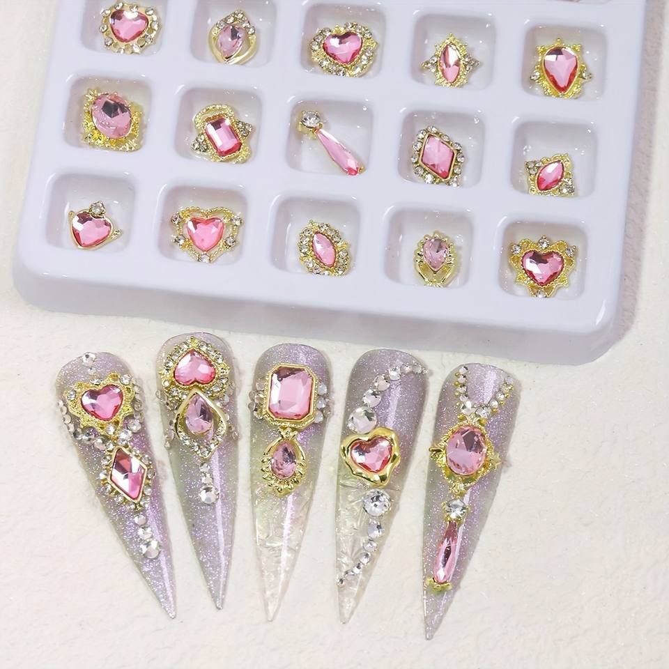 พลอยเทียมคริสตัลและอัลลอยด์เคลือบเงาสุดหรู20ชิ้นเครื่องประดับเล็บเพชรสำหรับทำเล็บแบบทำมือ