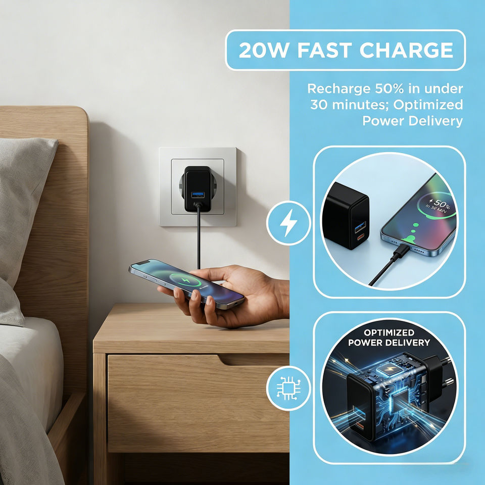 หัวชาร์จเร็ว 20W ปลั๊ก EU, อะแดปเตอร์ชาร์จติดผนัง