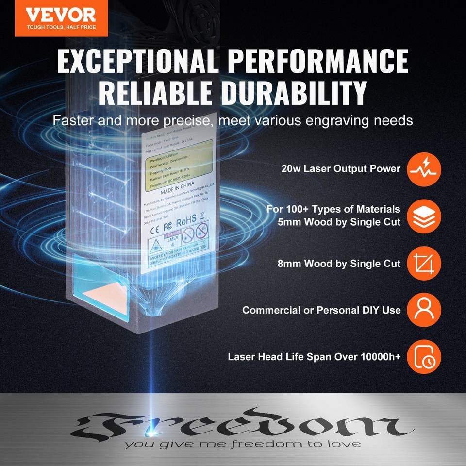 เครื่องแกะสลักเลเซอร์กำลัง 20 วัตต์ พื้นที่ทำงานขนาดใหญ่ 15.7 นิ้ว x 15.7 นิ้ว ความเร็วการเคลื่อนที่ 10000 มม./นาที เครื่องแกะสลักเลเซอร์แบบอัดแสง SP