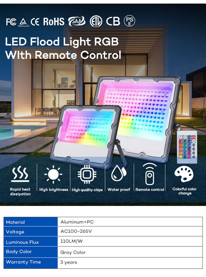 ไฟฟลัดไลท์ LED SMD RGB IP66กันน้ำ20W ถึง300W คุณภาพสูงพร้อมตัวเครื่องอลูมิเนียมหรี่แสงได้